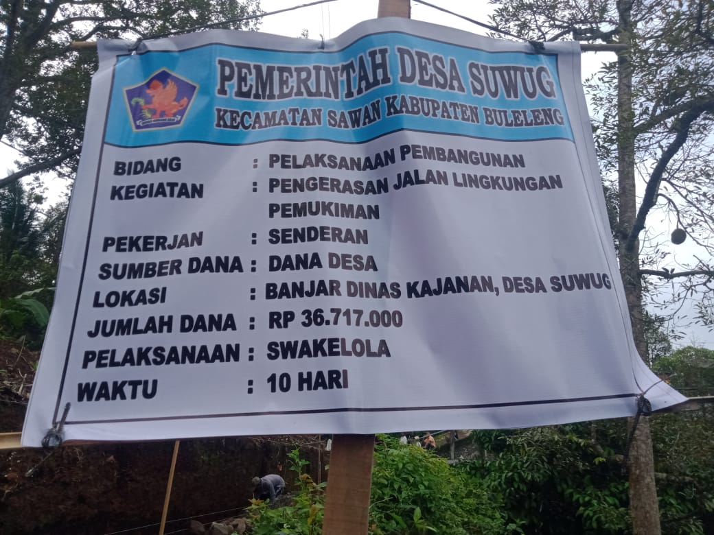 PEMBANGUNAN PENYENDERAN JALAN YANG BERSUMBER DARI DANA DESA YANG BERLOKASI DI LINGKUNGAN KARANG SUWUNG BD KAJANAN DESA SUWUG.