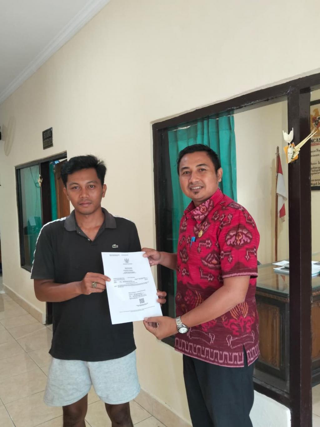 pelayanan adminitrasi kependudukan desa suwug kecamatan sawan,hari ini menyerahkan akta lahir dan kk kepda pemohon oleh Bapak Perbekel desa Suwug.