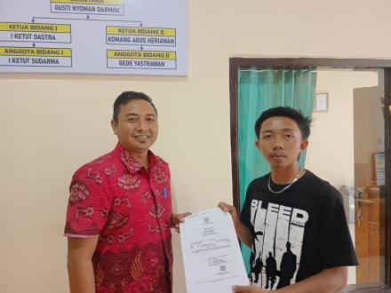 HARI INI BAPAK PERBEKEL DESA SUWUG MENYERAHKAN AKTA KELAIHIRAN KEPADA PEMOHON DAN KTP PERUBAHAN DATA KEPADA PEMOHON BAGI MASYARAKAT YANG MAU MENGURUS ADMINDUK SILAHKAN DATANG LANGSUNG KE KANTOR DESA SUWUG DI JAM OPRASIONAL KANTOR SENIN SAMPAI JUMAT DARI JAM 08.00 SAMPAI DENGAN PKL 14.00,SABTU MINNGU LIBUR/TUTUP.